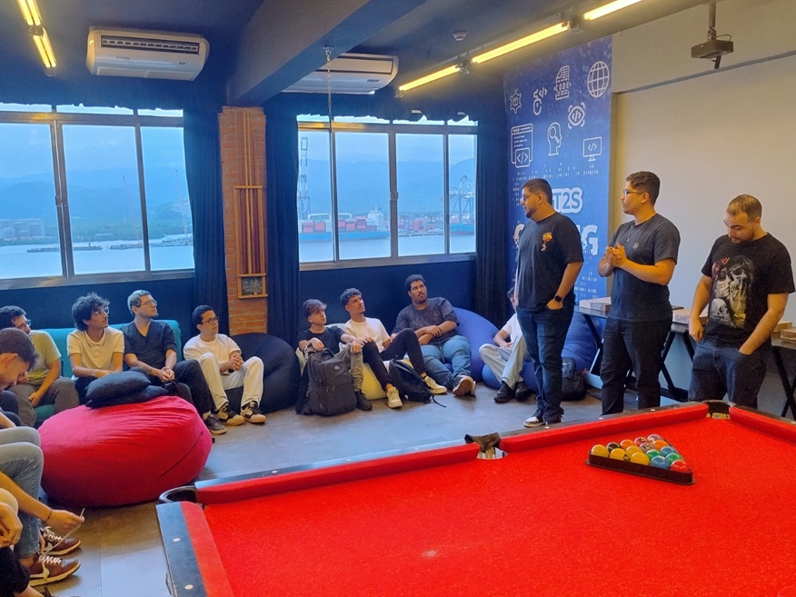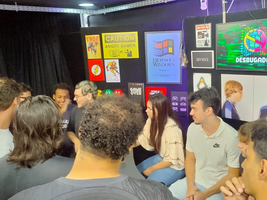Ao longo de três horas, os alunos foram recebidos pelos próprios fundadores da empresa, os ex-alunos do curso de Engenharia de Computação Ricardo Pupo Larguesa e Rodrigo Salgado, e tiveram a oportunidade de participar de bate-papos com colaboradores de diversos setores, como comercial, desenvolvimento e comunicação, conhecendo ainda o estúdio onde são gravados os programas semanais Desbugados e PortCast.